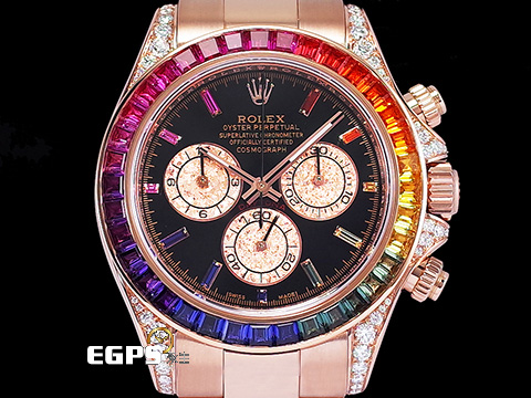 ROLEX 勞力士 DAYTONA 迪通拿 116505 永恆玫瑰金材質 鍊帶款 計時碼表 自動上鍊 精鑲漸層彩紅色寶石於錶圈及時標 精鑲鑽石於錶耳及護肩