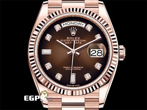 ROLEX 勞力士 Day-Date 128235 玫瑰金 漸變棕色面盤 原廠鑽石時標 3255型機芯