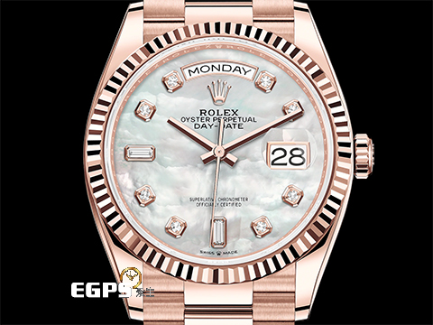 ROLEX 勞力士 Day-Date 128235 玫瑰金 珍珠貝母面盤 原廠鑽石時標 3255型機芯