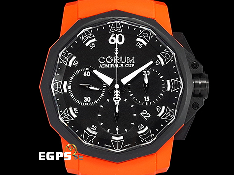 CORUM 崑崙 Admirals Cup 海軍上將 Challenger 44 Chrono Rubber 橘色橡膠限量款 PVD鍍黑鈦金屬材質 計時碼錶 自動上鍊 限量120只 44mm
