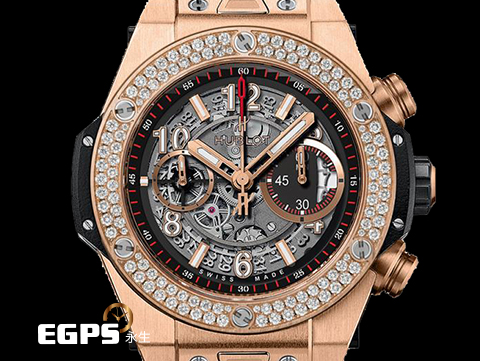 HUBLOT 宇舶 Big Bang Unico 大爆炸 King Gold Diamonds 王金 玫瑰金 飛返 計時碼表 411.OX.1180.RX.1104
