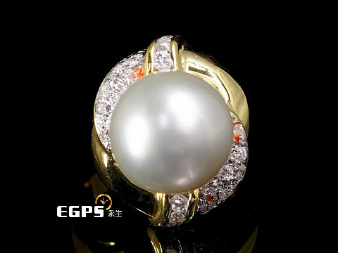 天然鑽石 黃K金 珍珠 11.5mm 天然配鑽 鑲鑽 圓鑽 珍珠戒指