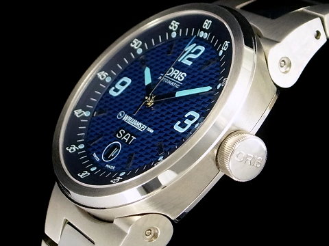 ORIS原廠自動上鍊機芯 / 時、分、秒大三針指示 / 6點鐘位置日期、星期窗顯示 / 防水50米