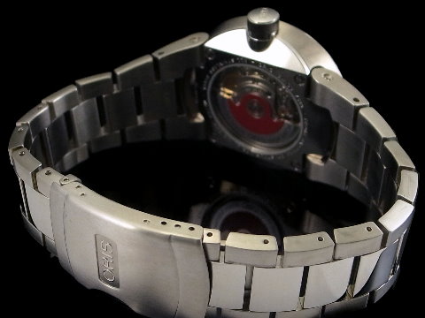 不鏽鋼材質錶殼、錶帶、摺疊扣 / 藍色格紋面盤、藍色指針、夜光時標 / 藍寶石水晶玻璃、透明錶背