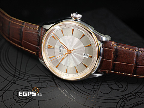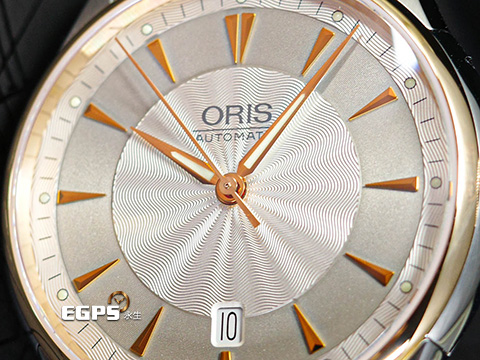 ORIS 豪利時 Artelier Date 藝術家 7591 銀灰色雕紋面盤 不鏽鋼 18K玫瑰金錶圈 0173375916351 大三針 2025年保卡 自動上鍊 40mm |