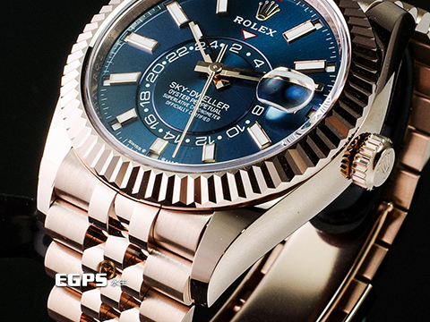 ROLEX 勞力士 Sky-Dweller 蠔式 天行者 336935 最新9002新機芯 藍綠色面盤 沙羅系統 年曆錶 兩地時區 永恆玫瑰金 紀念型(Jubilee)五銖錶帶 經典三角坑紋錶圈 2024年保單 自動上鍊 42mm |
