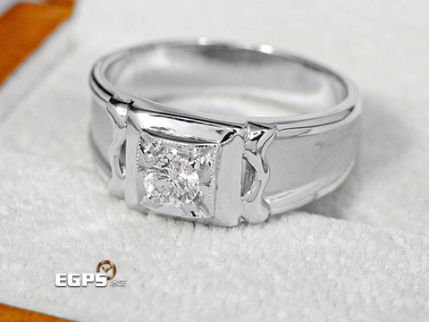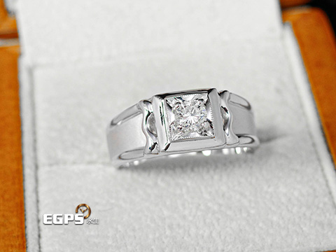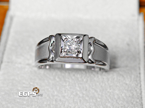 白K金 天然鑽石 主石重0.35CT 噴砂處理 鑽石戒指 男戒