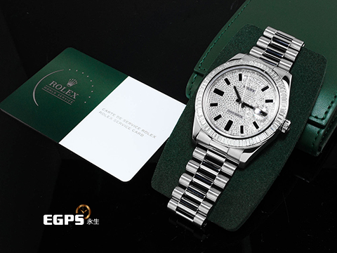 | ROLEX 勞力士 DAY-DATE 218399BRIL-83219 18K白金材質 原廠鑲嵌滿天星鑽石面盤 原廠鑽石時標 已回勞力士原廠保養,延長保固至2027年10月 自動上鍊 41mm |