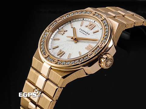 CHOPARD 蕭邦 Alpine Eagle 33 雪山傲翼 阿爾卑斯雄鷹 295384-5001 18K玫瑰金材質 原廠鑲嵌鑽石錶圈 銀白色螺旋放射紋面盤 大三針 2023年保單 新錶定價:1,600,000元 自動上鍊 33mm |