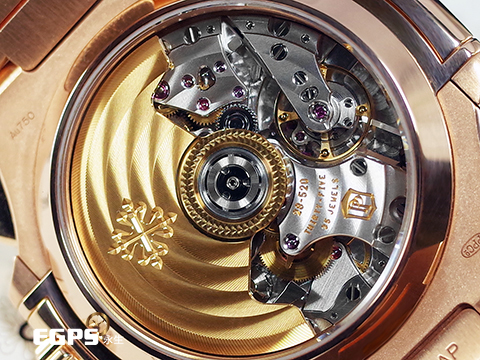5980R的玫瑰金鍊帶外型上延續了初世代Nautilus的設計特點,由拋光的中心鍊節與磨砂的外側鍊節精心組合而成,但比例修飾,不僅立體感十足,整體感覺更顯精美絕倫、熠熠生輝。