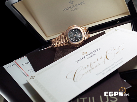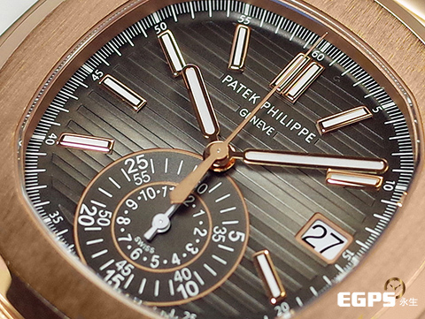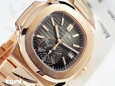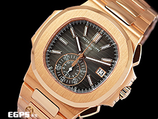 Patek Philippe 百達翡麗 PP錶 Nautilus Chronograph 金鷹 鸚鵡螺 5980/1R-001 18K玫瑰金材質 鏈帶款 同軸計時碼錶 漸層橫條紋褐色面盤 PP印記 2020年保單 自動上鏈 40.5mm |