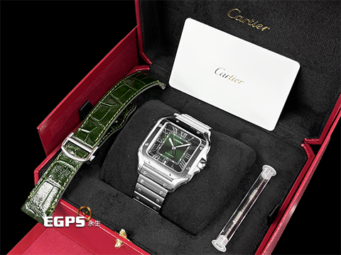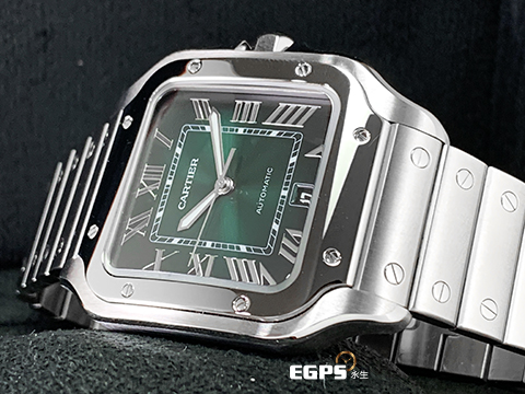 CARTIER 卡地亞 Santos de Cartier 山度士 WSSA0062 綠色太陽紋面盤 大型 不鏽鋼材質 快拆式錶帶 附原廠綠色皮帶 2024年保卡 自動上鍊 40mm |