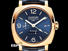 Radiomir 1940 10 Days Automatic Oro Rosso 10日動力儲存自動紅金腕錶是本系列最精緻的腕錶,藍色錶盤飾以緞面太陽放射飾紋,由沛納海全球專門店獨家發售。腕錶採用經典 Radiomir 1940紅金設計,搭載沛納海自製 P.2003/10機芯,蘊藏技術細節,並經精心潤飾。