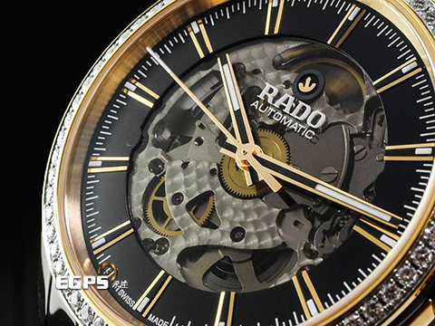 原廠鑲嵌鑽石錶圈 金色PVD塗層不鏽鋼+黑陶瓷錶殼 鏤空面盤 大三針