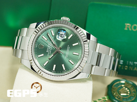 OYSTER PERPETUAL DATEJUST 41腕錶白色黃金及蠔式鋼款,搭配薄荷綠色錶面及蠔式錶帶。 蠔式錶殼搭配三角坑紋外圈,錶殼及錶耳兩側折射出淡雅光澤,令41毫米蠔式錶殼的輪廓更突出,倍添魅力。從審美角度來看,不同型號的Datejust腕錶在經歷了歲月洗禮之後,仍然保留著最初的美學元素。而其傳統的錶款,更是易於辨識的著名腕錶。
