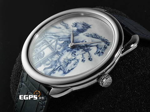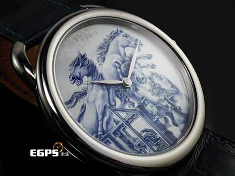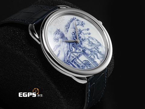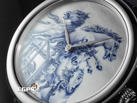 | HERMES 愛馬仕 Arceau 系列 Grand carrosse royal【準備迎接馬年的到來~馬到成功】 AR8.790.148 微繪工藝彩繪珍珠母貝面盤 18K白金材質 2024年台灣公司貨*絕版增值中限量12只 新錶訂價:2,402,000 元 自動上鍊 41mm |