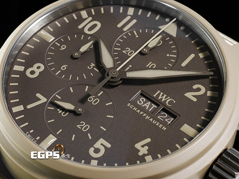 IWC 萬國錶 Pilot's 飛行員系列 TOP GUN 海軍空戰部隊計時腕錶41 莫哈韋沙漠特別版 沙漠色陶瓷材質 IW389402 2025年保卡 自動上鍊 41.9 mm