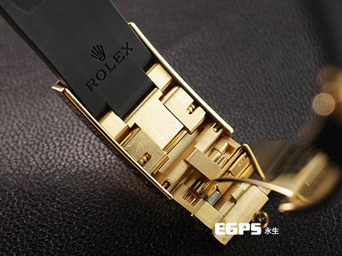 18k黃金材質錶殼、錶帶、摺疊扣、旋入式錶冠 / 黑色面盤 / 夜光賓士指針、時標 / Cerachrom黑色陶瓷刻度雙向旋轉錶框 / Oysterflex黑色橡膠錶帶 / Glidelock延展系統蠔式保險扣 / 藍寶石水晶玻璃鏡面 |