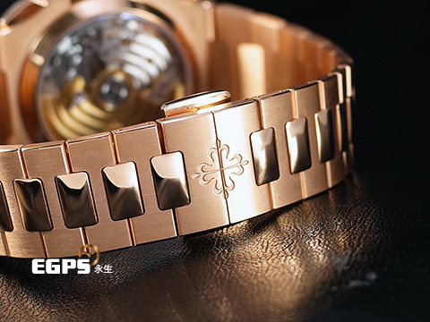 5980R的玫瑰金鍊帶外型上延續了初世代Nautilus的設計特點,由拋光的中心鍊節與磨砂的外側鍊節精心組合而成,但比例修飾,不僅立體感十足,整體感覺更顯精美絕倫、熠熠生輝。