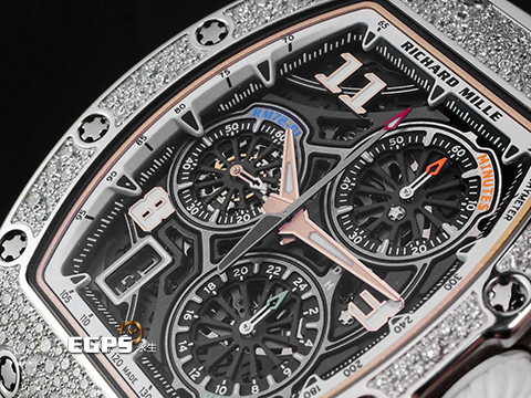 | RICHARD MILLE 理查德•米勒 RM RM72-01 WG 18K白金材質 極致完美工藝~ 鏤空面盤 原廠鑲嵌【SNOWFLAKE DIAMONDS】 "宛如雪花般的頂級鑽石" 雪花造型鑽石錶圈 自製飛返計時機芯 2025年保單 自動上鏈 38.4 x 47.34mm |