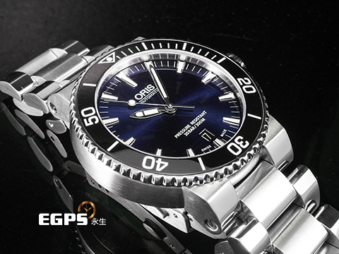 | ORIS 豪利時 Aquis Date Calibre 400 時間之海 01 733 7653 4135-07 8 26 01PEB 不鏽鋼材質 藍色太陽紋放射面盤 單向陶瓷錶圈 台灣公司貨 潛水錶 自動上鍊 43mm |