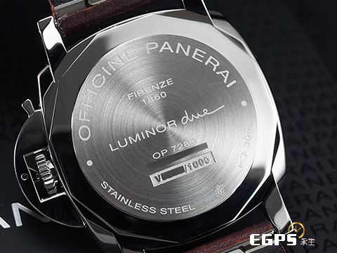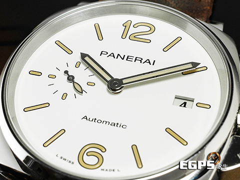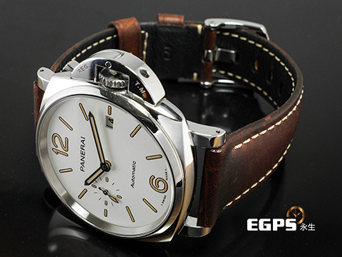 PANERAI 沛納海 LUMINOR DUE PAM1046 小秒針 PAM01046 不鏽鋼材質 白色奶油面盤 沛納海專利護橋 夜光指針 2021年保單 台灣公司貨 自動上鍊 42mm