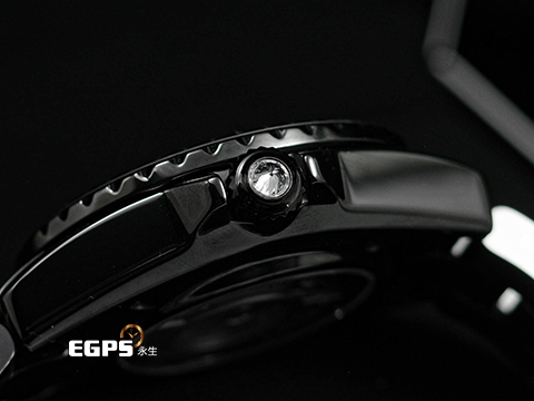 經典材質:錶殼與錶帶均採用高抗磨損的黑色陶瓷與精鋼材質,延續了 J12 系列標誌性的時尚運動風格。陶瓷材質以其極佳的耐刮性和輕盈感而聞名。 精緻細節:黑色漆面錶盤搭配同色調的陶瓷數字時標,展現低調統一的美學。旋入式錶冠上鑲嵌一顆約 0.11 克拉的圓形明亮式切割鑽石,增添一抹精緻的奢華感。