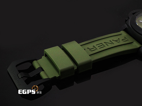 碳纖維材質錶殼、標準穿扣、專利護橋錶冠鎖 / 軍綠色面盤 / 夜光指針及時標 / 原廠軍綠色橡膠錶帶 / 藍寶石水晶玻璃鏡面 |