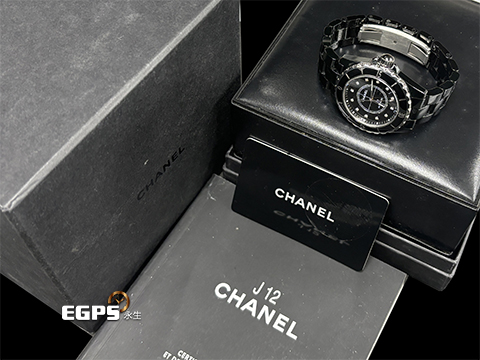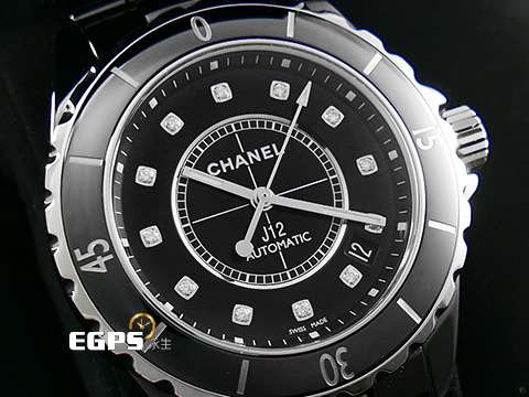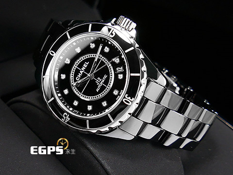 | CHANEL 香奈兒 J12 Black Ceramic H1626 經典 黑陶瓷 專利不鏽鋼蝴蝶扣 原廠鑲嵌鑽石時標 自動上鍊 38mm |