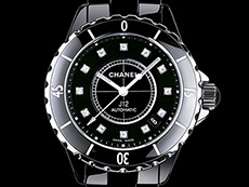 CHANEL J12 是以在國際大賽中屢獲冠軍的 J12 帆船為靈感,由 CHANEL 藝術總 Jacques Helleu,耗時 2 年設計研發,由原廠在瑞士的 Chaux-de-Fonds 生產。錶殼以礦砂在 1450 度 C 精鍊塑造而成之高科技精密陶瓷,此材質強度極高、耐磨、防刮傷,硬度可媲美藍寶石,只有鑽石、紅、藍寶才能破壞它。外殼經鑽石砂拋光成油油亮亮的折射光彩,在碳化鎢合金錶殼上嵌入一高精密陶瓷錶框環。錶帶有精密陶瓷及橡膠兩種,並搭配原廠特別研發且獲專利的蝴蝶釦。 J12 運動錶一如其名,同時兼具極致的美學、頂級的工藝、創新的技術、服貼的弧度和設計的細節, 在在都傳達出 CHANEL 香奈兒永恆不滅的魅力以及堅毅優雅的精神。此新款陶瓷錶,為CHANEL的全新色彩,黑陶瓷是一種全新的材質,經過鑽石粉末的潤色呈現出相當獨特的色彩及光澤,相當時尚,男女皆宜,此一應用,也將CHANEL J12再邁進創奇的一刻。