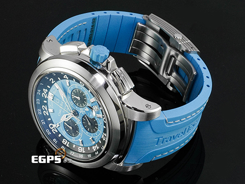 CFB 1901.1自動上鍊計時機械機芯 / 時、分、小秒針時間指示 / 42小時動力儲存 / 日期顯示窗 / 三地時區顯示、計時碼錶 / 生活防水