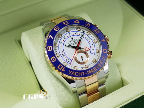 | ROLEX 勞力士 Yacht-Master II 蠔式 遊艇名仕型 116681 藍鋼指針面盤 帆船 倒數 計時碼表 永恆玫瑰金 半金款 陶瓷外圈 大遊艇 2013年保單 自動上鍊 44mm |