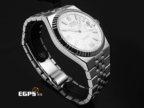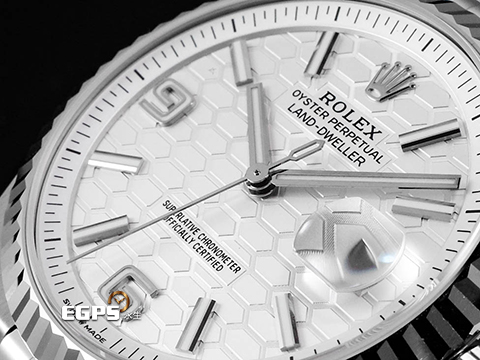 | ROLEX 勞力士 Land-Dweller 40 蠔式 陸行者 127334 醇白色蜂巢圖案錶面 大三針 不鏽鋼 最新款7135型機芯 透明錶背 18K白金經典三角坑紋外圈 2026年保卡 纖薄紀念型(Flat Jubilee)錶帶 自動上鍊 40mm |