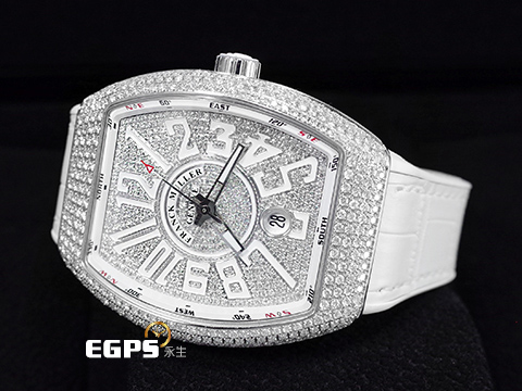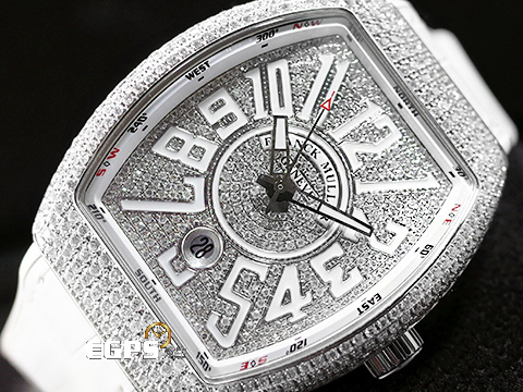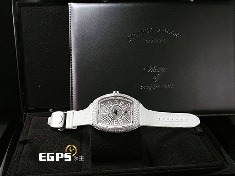 | Franck Muller 法蘭穆勒 FM Vanguard YACHT V41 SC DT 精鑲鑽框 不鏽鋼 自動腕錶 滿滿的美鑽耀眼奪目 白色阿拉伯數字時標、白色內圈 複合材質錶帶, 絕對是目光的焦點,歡迎來店試戴!! 40.8X50mm |
