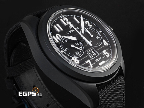 | ZENITH 真力時 PILOT BIG DATE FLYBACK 飛行員 高振頻 49.4000.3652/21.I001 黑色陶瓷材質 黑色橫向雕紋飾面盤 大日期窗 飛返 計時碼表 2026年保卡 自動上鍊 42.5mm |