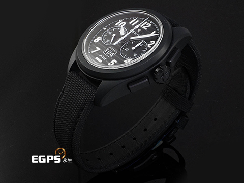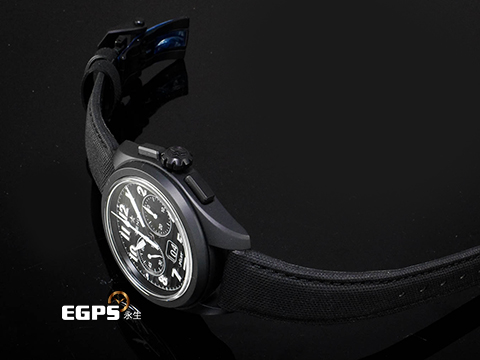 黑色陶瓷材質錶殼、折疊帶扣、錶冠 / 黑色橫向雕紋飾面盤 / 黑色「Cordura」效果橡膠錶帶 / 夜光指針、時標 / 藍寶石水晶玻璃 / 透明錶背 |