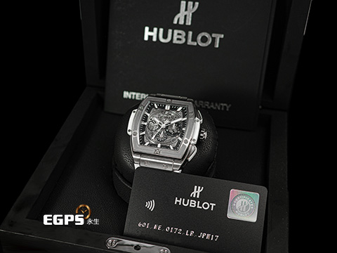 | Hublot 宇舶 Split of Big Bang Titanium 大爆炸 靈魂系列 601.NE.0172.LR.JPN17 鈦金屬 鏤空面盤 計時碼表 2019年保單 自動上鍊 45mm |