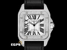 | CARTIER 卡地亞 Santos 100 山度士 中型 鑲鑽錶圈 經典羅馬數字時標 大三針 自動腕錶 36mm |