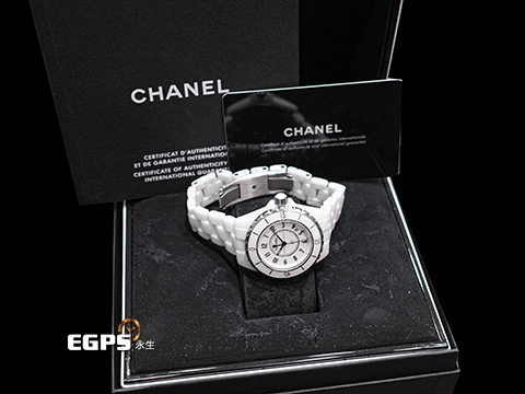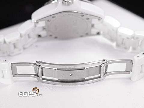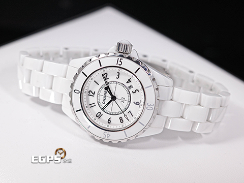 CHANEL 香奈兒 J12 White Ceramic H0968 經典 白陶瓷 大三針 專利不鏽鋼蝴蝶扣 石英腕錶 33mm