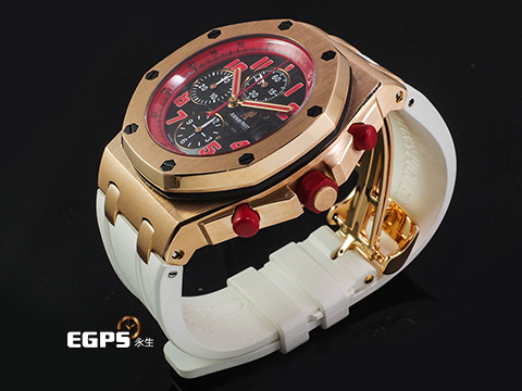 | Audemars Piguet AP錶 愛彼 Royal Oak Offshore 皇家橡樹離岸型 計時碼錶 26299OR.OO.D001GA.01 18K玫瑰金材質 黑色“Mega Tapisserie”錶盤 馬庫斯標誌錶背 全球限量50枚 自動上鏈 42mm |
