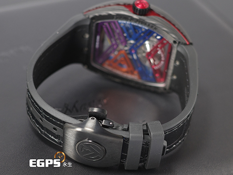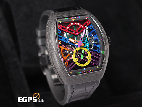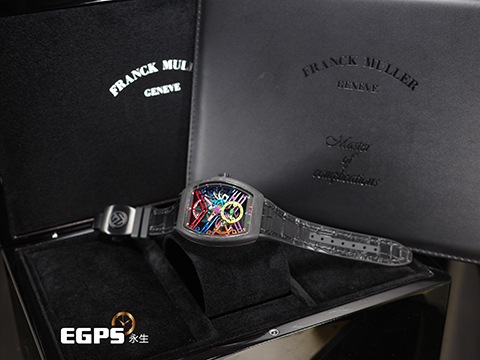 | Franck Muller 法蘭穆勒 FM錶 Vanguard Skeleton V41 鍛造炭材質錶殼 V41 S6 SQT COL DRM 七日鍊 Colour Dreams鏤空面盤 小秒針 酒桶型 2025年保單 新錶訂價:2,032,000元 手動上鍊 41mm |