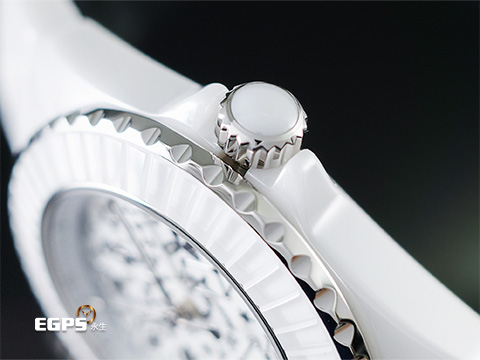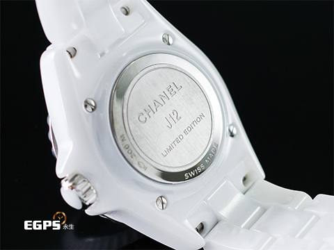 高科技白色陶瓷材質限量款 / 白色面盤、拋光鍍銠圖騰、12顆鑽石鑲嵌其間呼應「J12」之名 / 旋入式錶冠 / 單向旋轉錶圈 / 藍寶石水晶玻璃鏡面 / 專利不鏽鋼蝴蝶扣 |