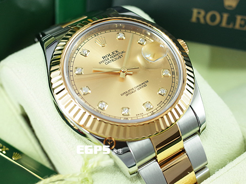 | ROLEX 勞力士 Datejust DJ41 116333G 116333 18K黃金搭配不鏽鋼材質 半金款 原廠鑽石時標 香檳金色面盤 自動上鍊 41mm |