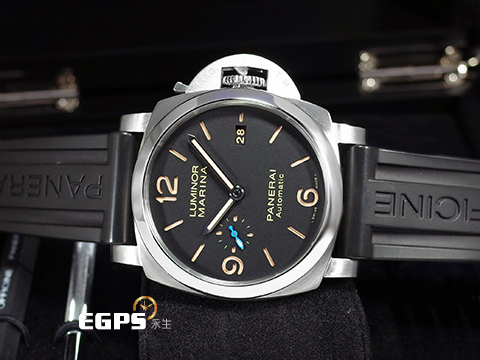 | PANERAI 沛納海 Luminor Marina PAM01312 三日鍊 經典淡褐色夜光三明治面盤 菸草面 PAM1312 藍色小秒針 不鏽鋼材質 2019年保單 絕版透背款 自動上鍊 44mm |