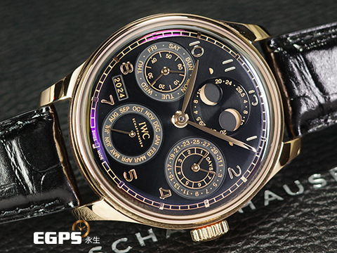 | IWC 萬國 Portugieser Perpetual Calendar 葡萄牙 IW503702 18K Armor Gold材質錶殼 萬年曆 月相盈虧 七日鍊 曜石黑面盤 2024年保卡 台灣公司貨 僅試戴極新品 自動上鍊 44.2mm |