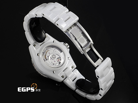J12腕錶系列經典款,首次將機芯顯露於藍寶石水晶底蓋之下,CHANEL腕錶創意工作室,以品牌於高級製錶設計中,時常運用經典圓弧造型概念來詮釋Caliber 12.1機芯,使新作呼應內外皆美的創意精神。
