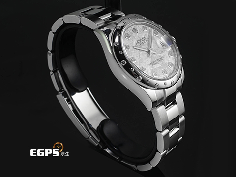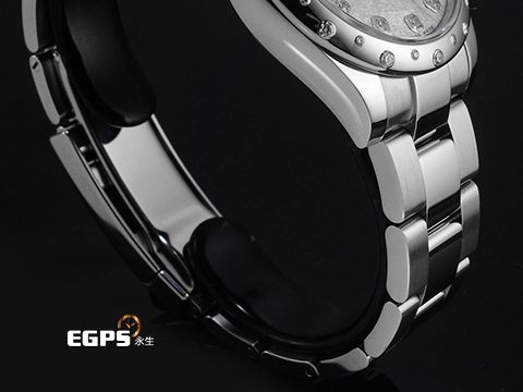 904L不鏽鋼材質錶殼、錶鍊帶及摺疊帶扣/ 隕石面盤 / 原廠鑲嵌鑽石時標 / 雪花式鑲鑽錶圈 / 旋入式錶冠 / 藍寶石水晶玻璃鏡面 |