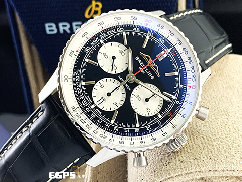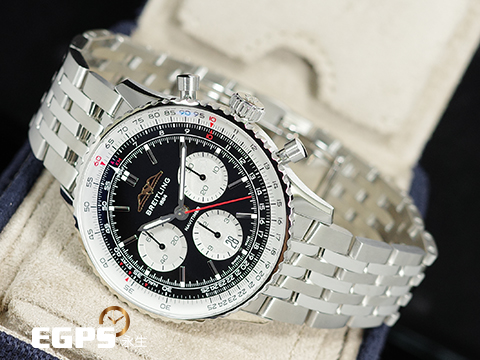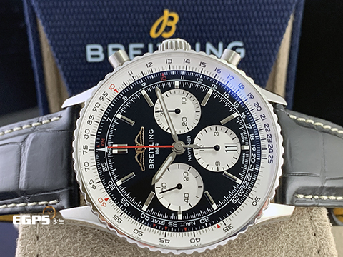 | BREITLING 百年靈 NAVITIMER B01 CHRONOGRAPH 航空計時 AB0138211B1P1 不鏽鋼材質 黑熊貓面盤 附加購原廠鏈帶 百年靈自製01機芯 2025年保單 自動上鍊 43mm |