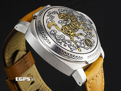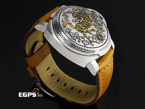 316L不鏽鋼材質錶殼、標準穿扣、專利護橋錶冠鎖、馬年圖案錶蓋 / 銀色面盤 / 夜光指針 / 棕色皮革錶帶 / 藍寶石水晶玻璃、透明錶背 |