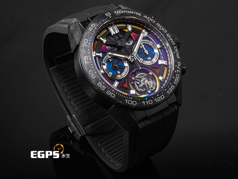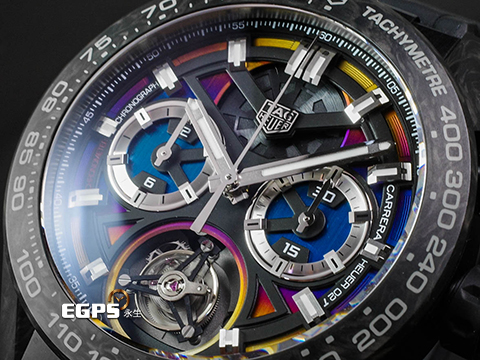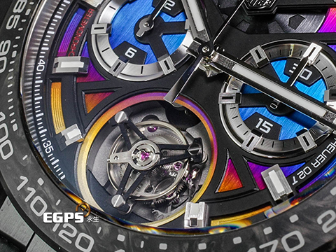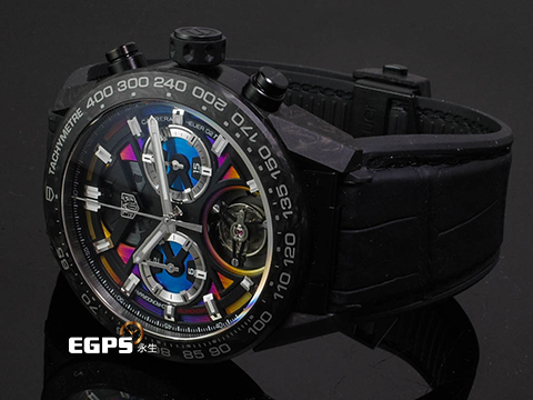 | Tag Heuer 泰格 豪雅 Carrera 卡萊拉 CAR5A8AF.FC6415 PVD塗層鈦金屬 彩虹蛋白石造型錶圈 陀飛輪 彩虹鏤空面盤 限量發行150枚 新錶訂價:1,093,700元 2024年保卡 台灣公司貨 自動上鍊 45mm |